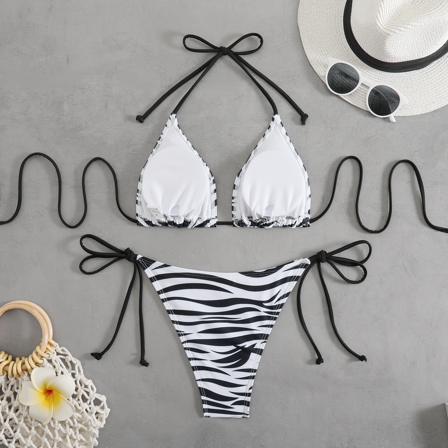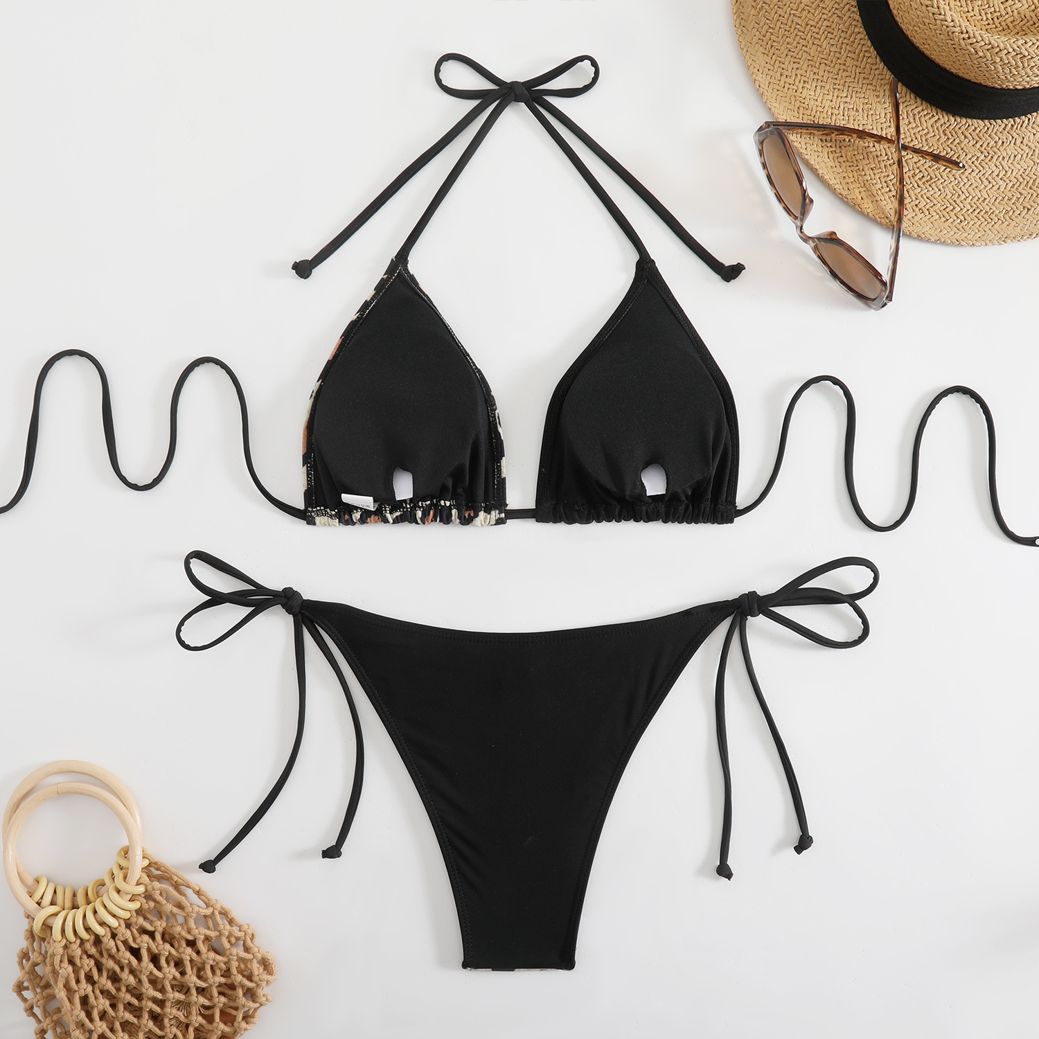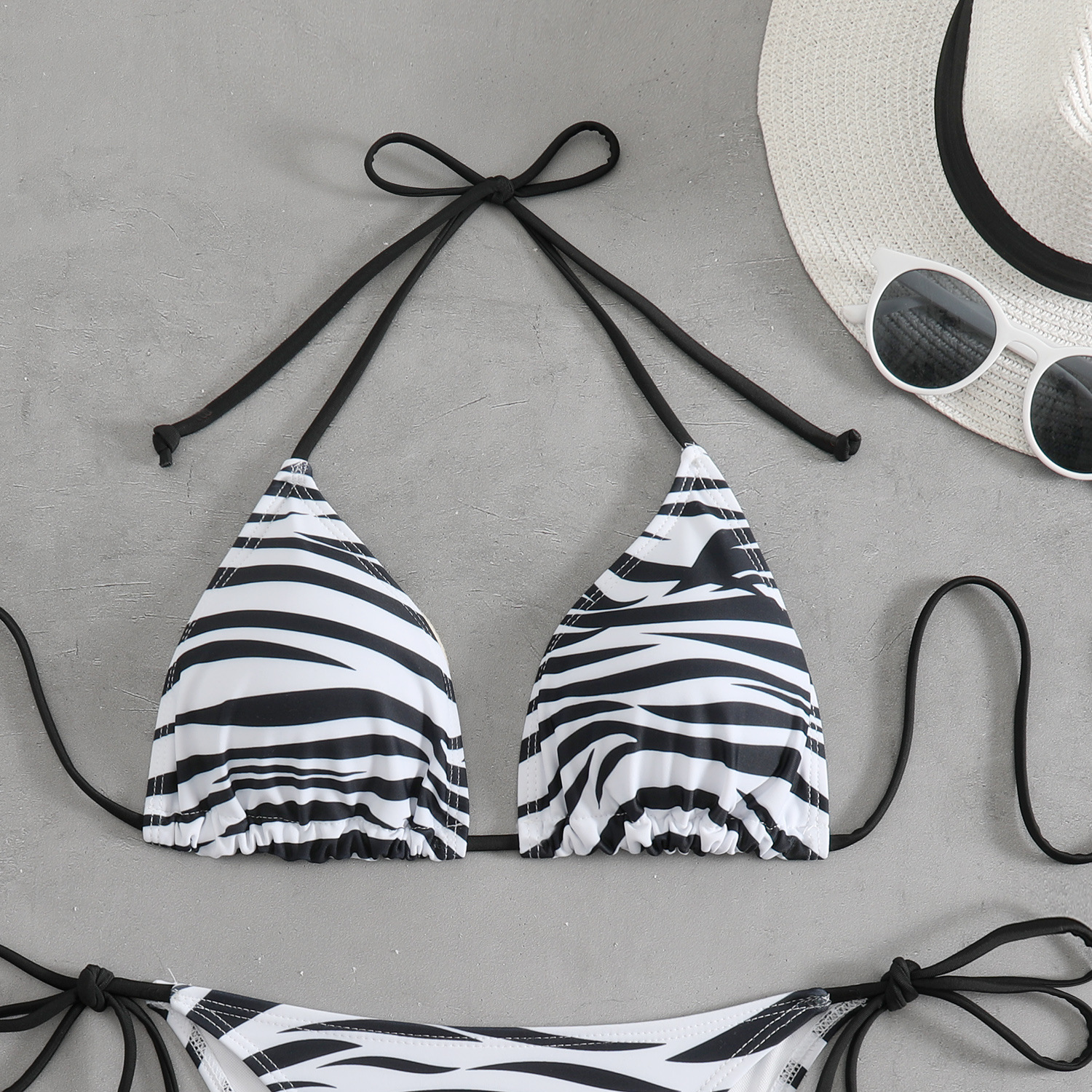 Style: Sleeveless triangle top with brief bottoms