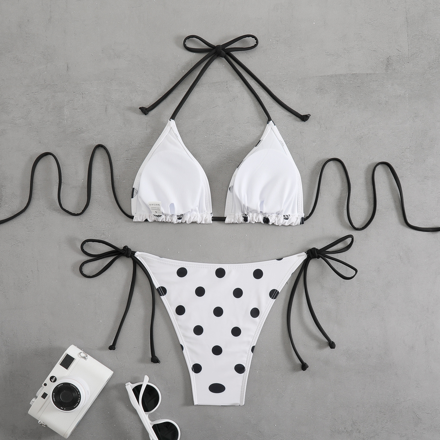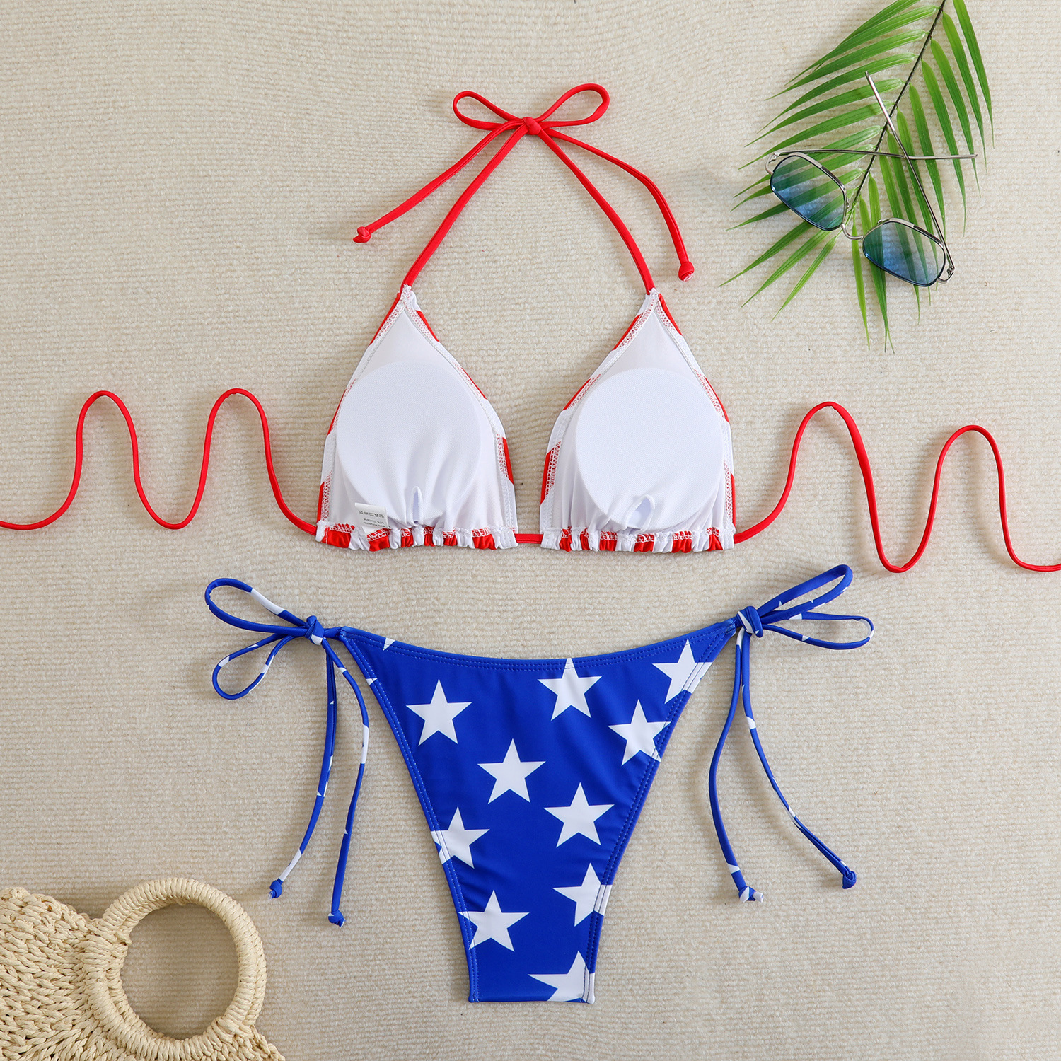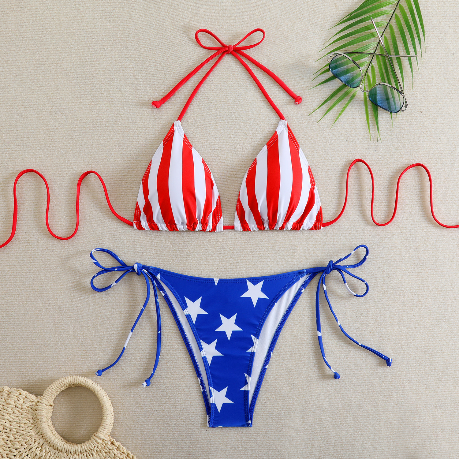 Style: Sleeveless triangle top with brief bottoms