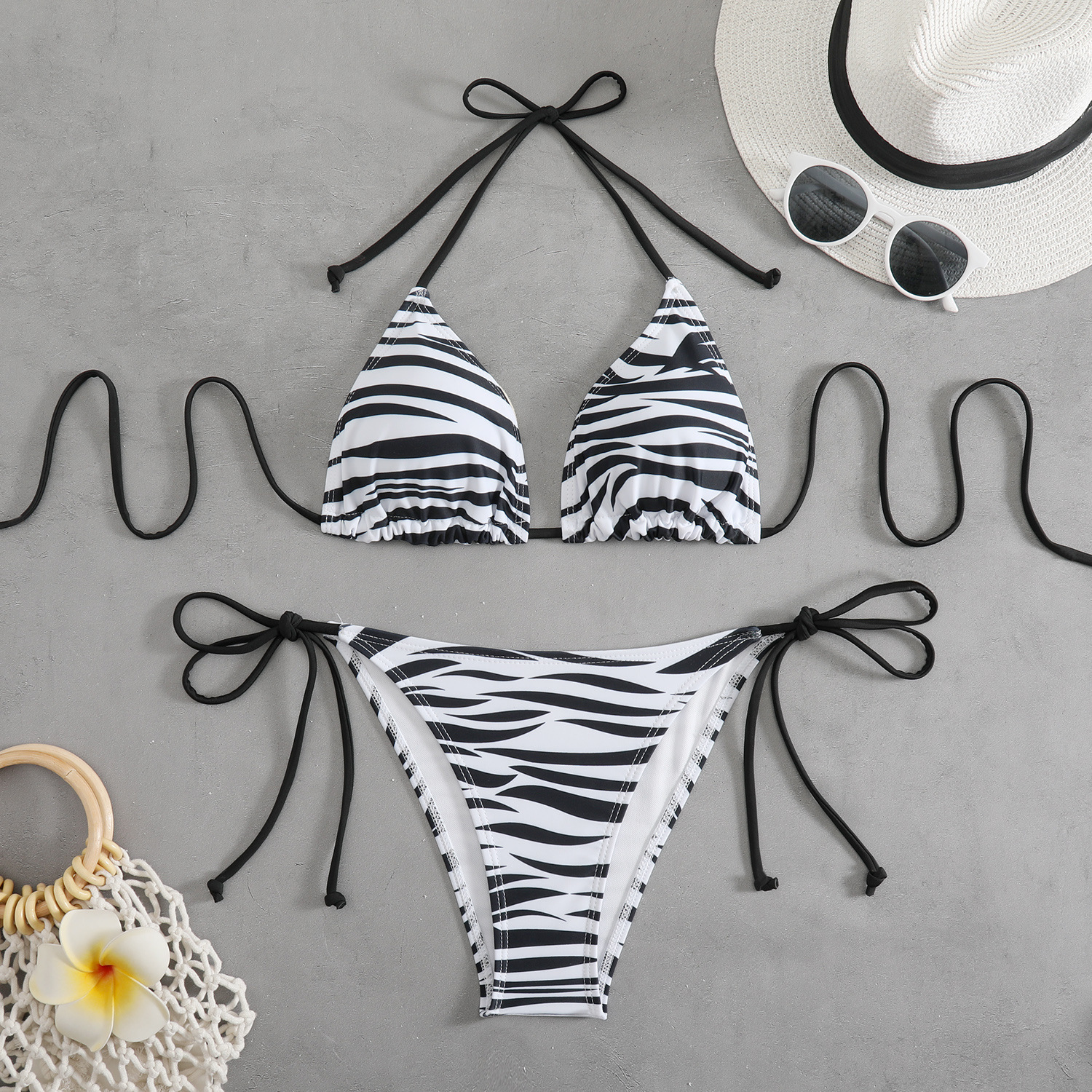 Zebra Print Lace-up Bikini Set